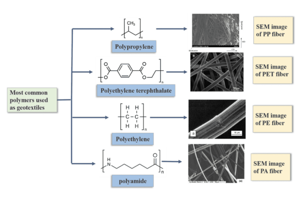 Geotextiles are versatile and helpful materials with a wide range of applications in civil engineering and environmental projects. They are made of various polymers, such as polypropylene and polyester, and can be woven or nonwoven. To summarize: