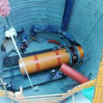 AGRU presented an installation plan that involved electrofusion welding in situ using specialized tooling, which was designed for this project to minimize the sewer pipe’s installation footprint. Engineers first built a metal tunnel to offer structural support and encase the sewer pipe to prevent vibrational forces from affecting its new pipe. Installers filled the space between the pipe and tunnel with concrete. The total working area for installation was about 5.6 m in diameter and 10 m below the ground level.