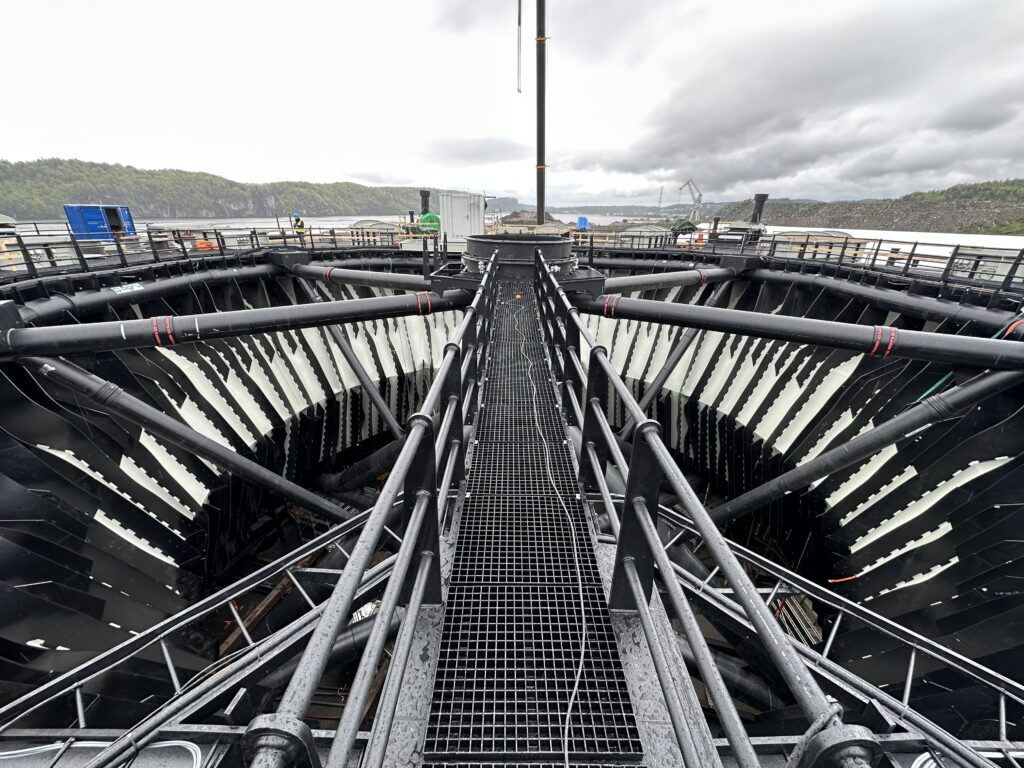 The innovation of the Marine Donut lies in its enclosed structure. It allows for the protection and maintenance of salmon health by shielding them from parasites such as sea lice. The introduction of filtered deep water prevents the incursion of salmon lice. Inside the facility, food residues and fish excrement are collected as sludge and pumped to land for environmentally friendly disposal. This process not only minimizes the environmental impact of salmon farming but also prevents the spread of diseases.
